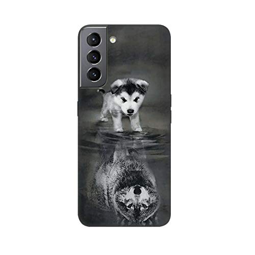 DiaryTown pour Coque Samsung Galaxy S21 5G, Etui Noir en Silicone Souple avec Motif Animal Mince Slim TPU Gel Bumper Antichoc Case Housse de Protection pour Samsung S21 5G, Chien Loup
