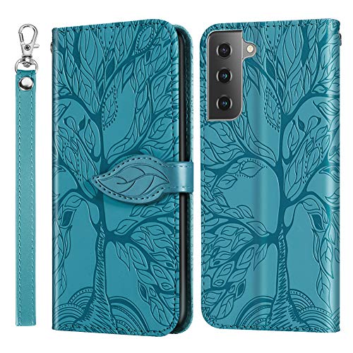 IMEIKONST Coque Compatible avec Samsung Galaxy S21 5G, Flip Étui PU Cuir [Porte-Cartes de Crédit] Portefeuille [Magnétique] Étui à Rabat Housse Coque pour Galaxy S21 5G. Tree Blue RXZ
