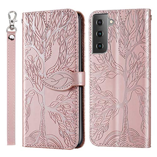 IMEIKONST Coque Compatible avec Samsung Galaxy S21 5G, Flip Étui PU Cuir [Porte-Cartes de Crédit] Portefeuille [Magnétique] Étui à Rabat Housse Coque pour Galaxy S21 5G. Tree Rose RXZ