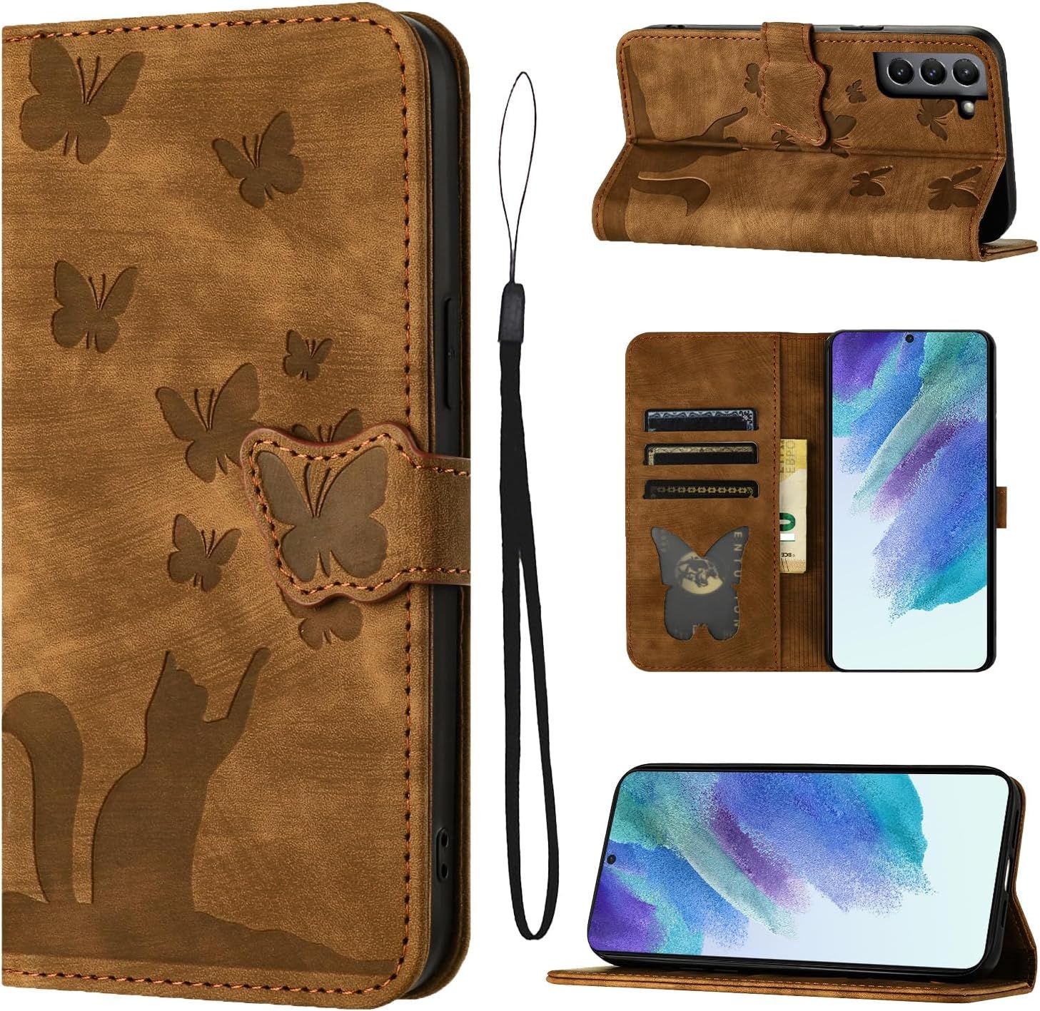 LSPCASA Housse Protection pour Samsung Galaxy S21 FE 5G 6.4 Pouces Matériau en Cuir PU Coque Galaxy S21 FE 5G avec Fentes pour Cartes Coque S21 FE 5G Samsung Marron