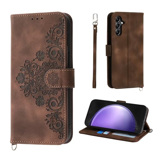 Auslbin Fleur Coque S23 FE 5G (2023) 6.4", étui de Protection en Cuir PU de Style Vintage pour Samsung Galaxy S23 FE (2023), Brun