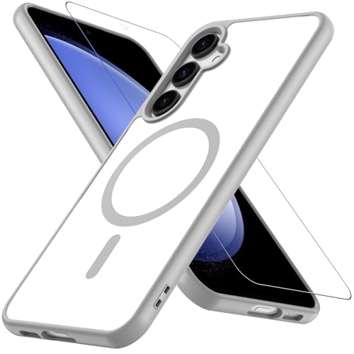 OWKEY Coque pour Samsung Galaxy S23 FE 5G, Compatible avec MagSafe avec Verre Trempé, [Protection Militaire] Magnétique Coque Samsung S23 FE Étui Arrière Housse Fine Antichoc Case pour S23 FE, Gris