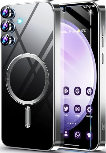 Neivi Coque pour Samsung Galaxy S23 FE avec Mag-Safe Magnétique Protection Caméra [avec Film de Protection] Transparent Anti-Jaune TPU Souple Bumper Antichoc Coque Samsung S23 FE AntiRayures (Noir)