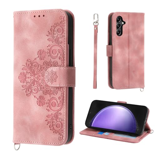 Auslbin Fleur Coque S23 FE 5G (2023) 6.4", étui de Protection en Cuir PU de Style Vintage pour Samsung Galaxy S23 FE (2023), Rose