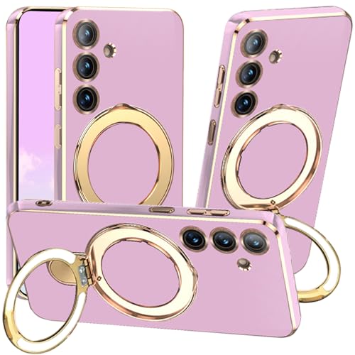 Kainevy pour Coque Samsung S24 Plus avec Support Anneau Métal pour MagSafe Rose Etui Magnétique Samsung Galaxy S24 Plus Coque Antichoc Silicone, Housse Charge Induction avec Protection Caméra (Violet)