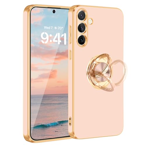 Fingic Coque pour S24 Plus, Samsung S24 Plus [avec support anneau à 360°] [Prise en charge du support magnétique de voiture] Coque de protection mignonne, fine, antidérapante, en TPU souple, or rose