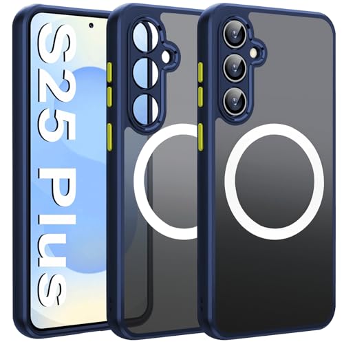 Fiyer Coque pour Samsung S25 Plus avec MagSafe sans Fil, Étui Housse pour Samsung Galaxy S25 Plus Coque Magnétique Fine Antichoc de Grade Militaire Cover, Coque S25 Plus Translucide Mat Case (Bleu)