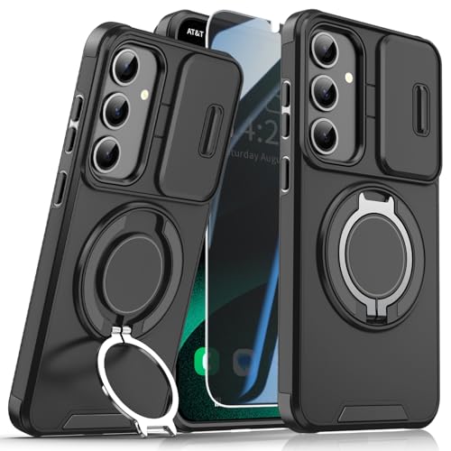 ANTSHARE Coque Samsung Galaxy S25 Plus avec 1*Anti-espionnage Verre Trempé+Anneau Support,Full Protection de la Caméra en PC Dur Anti-Chut Renforcée Armor Heavy Duty Antichoc Bumper Coque S25 Plus