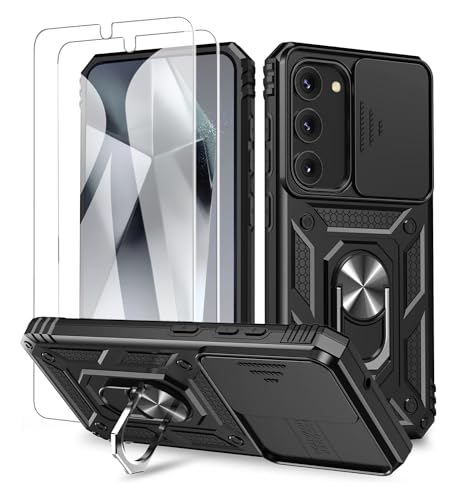 Fewdew Coque pour Samsung Galaxy S25 Plus/S24 Plus avec Couvercle de l'appareil Photo Coulissant & 2 Verre Trempé & Anneau,Militaire Antichoc Robuste Coque pour Samsung S25 Plus/S24 Plus,Noir