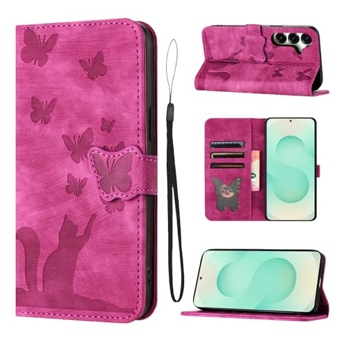 Coque pour Samsung Galaxy S25 Plus / S25+ 5G, Coque Samsung Galaxy S25 Plus/ S24 Plus Housse Etui Portefeuille Protection Housse Fermeture Magnétique Etui à Rabat pour Samsung S25 Plus 5G, Rose