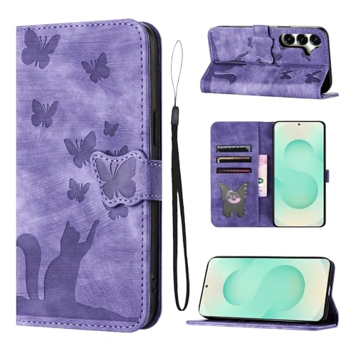 LSPCASA Housse Protection pour Samsung Galaxy S25 Plus/S24 Plus 5G Pouces Matériau en Cuir PU Coque S25 Plus/S24 Plus avec Fentes pour Cartes Housse S25 Plus/S24 Plus Violet