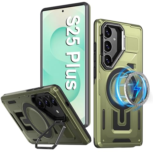 Coque S25 Plus Compatible avec MagSafe, Coque pour Samsung Galaxy S25 Plus avec Support pour Appareil Photo, Coque pour Samsung S25 Plus 5G Antichoc de Qualité Militaire, Magnétique Robuste (Vert)