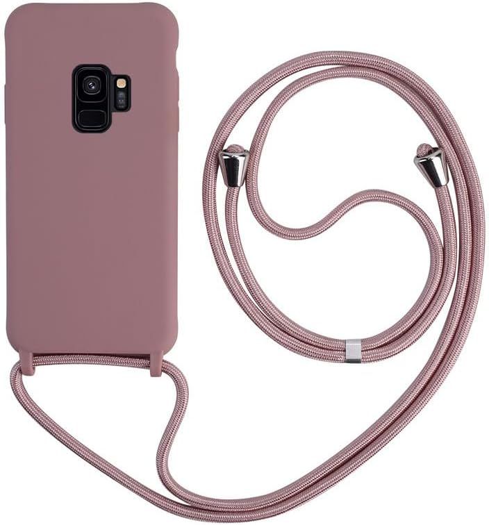 Collier Pour Samsung Galaxy S9 Coque Silicone Liquide Bumper Housse Galaxy S9 Laniere Avec Cordon Reglable Longueur Chaine Lanyard Case Housse Etui Pour Samsung S9, Or Rose