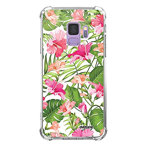 Evetane Coque Compatible avec Samsung Galaxy S9 Silicone Coins antichocs Solide Protection complète Resistant Transparente Fleurs Tropicales Motif Ecriture Tendance