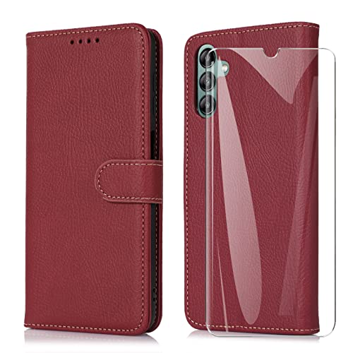 SMYTU Coque pour Samsung Galaxy A04s / A13 5G + Verre Trempé,Protection Portefeuille Case Cover de Magnétique for Samsung Galaxy A04s / A13 5G,Housse en Cuir Case Samsung Galaxy A04s / A13 5G - Rouge