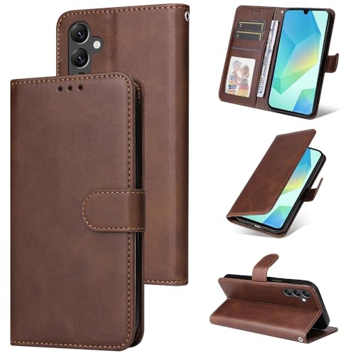Lonjanfon Coque Samsung Galaxy A16 5G, Housse Cuir PU Premium [RFID Blocage][Porte Cartes][Stand Fonction][Antichoc] Magnétique Flip Étui pour Samsung Galaxy A16,Café