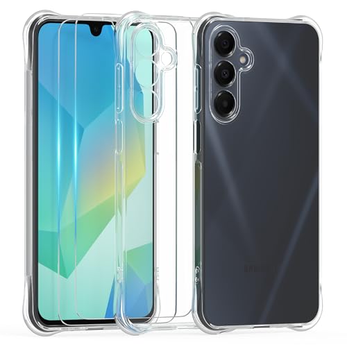 ivoler Coque pour Samsung Galaxy A16 4G/5G, avec 2 Films de Protection en Verre Trempé, Protection de l'objectif améliorée, Étui Transparent Antichoc Mince, Clair