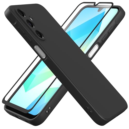 HHUIWIND Coque pour Samsung Galaxy A16 5G / 4G (6.7") avec Verre Trempé écran Protecteur,Housse de Protection Silicone TPU Anti-Scratch Antichoc Bumper Étui Case Cover - Noir