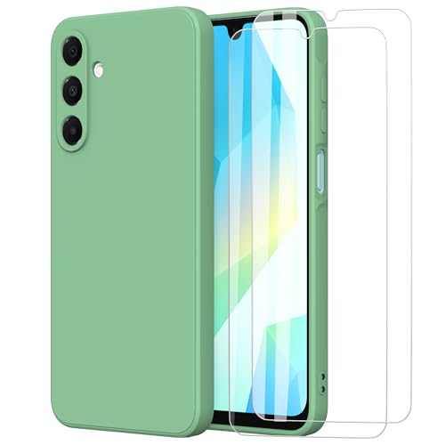 THIYUFUNS Coque pour Samsung Galaxy A16 5G / 4G avec 2 Verre trempé,Silicone Liquide Housse Étui de Protection Galaxy A16 Microfibre Anti-Rayures Coque Galaxy A16 5G / 4G (6.7") - Vert