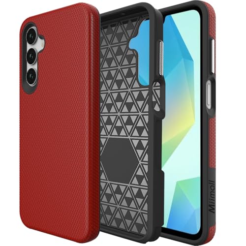 Miimall Coque pour Samsung Galaxy A16 5G 2024, Protection Double Couche [Certification SGS] Armure, Militaire Robuste Antichoc Renforcée Étui Samsung A16 Texture Antidérapante, Rouge