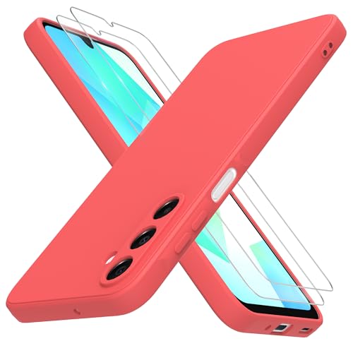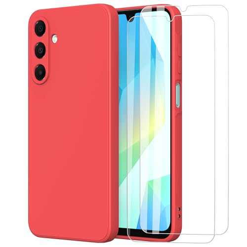 THIYUFUNS Coque pour Samsung Galaxy A16 5G / 4G avec 2 Verre trempé,Silicone Liquide Housse Étui de Protection Galaxy A16 Microfibre Anti-Rayures Coque Galaxy A16 5G / 4G (6.7") - Rouge