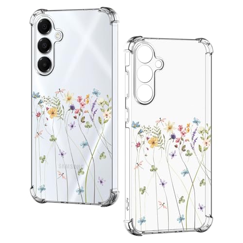 Nuxiady Coque pour Samsung Galaxy A16 5G / 4G Silicone Transparente Antichoc Housse TPU Fleur Anti-Rayures Étui Bumper avec Coins Renforcés Cover pour Galaxy A16, Petite Fleur Papillon