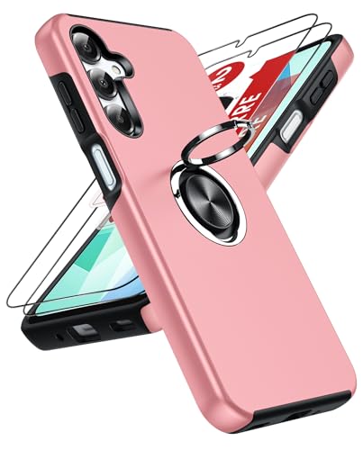 LeYi Coque pour Samsung Galaxy A16 avec 2 Verre Trempé Vitre Protection et Anneau Telephone Invisible, Militaire PC et TPU Etui Antichoc Housse pour Samsung A16 - Rose