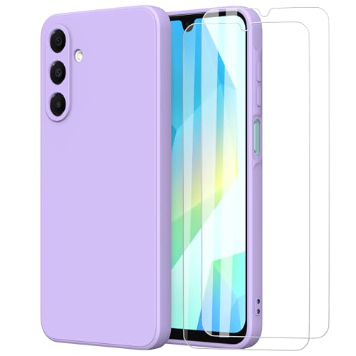 THIYUFUNS Coque pour Samsung Galaxy A16 5G / 4G avec 2 Verre trempé,Silicone Liquide Housse Étui de Protection Galaxy A16 Microfibre Anti-Rayures Coque Galaxy A16 5G / 4G (6.7") - Violet Clair