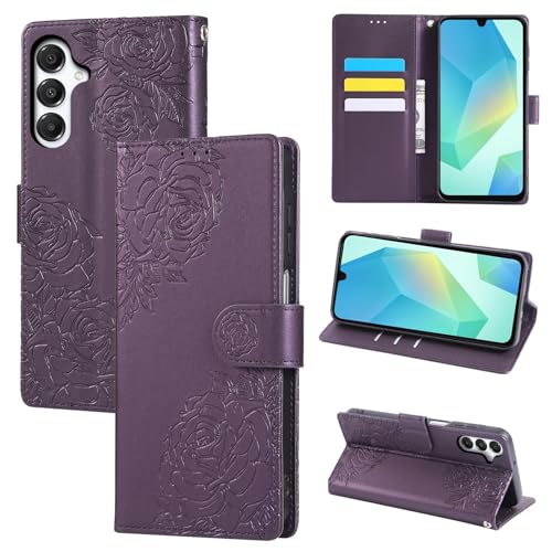 CASAFUNY Coque pour Samsung Galaxy A16 5G Etui Églantier PU Etui Housse en Cuir Portefeuille de Protection avec Porte Carte à Rabat Clapet Magnétique Flip Case Coque pour Samsung A16 5G, Violet foncé