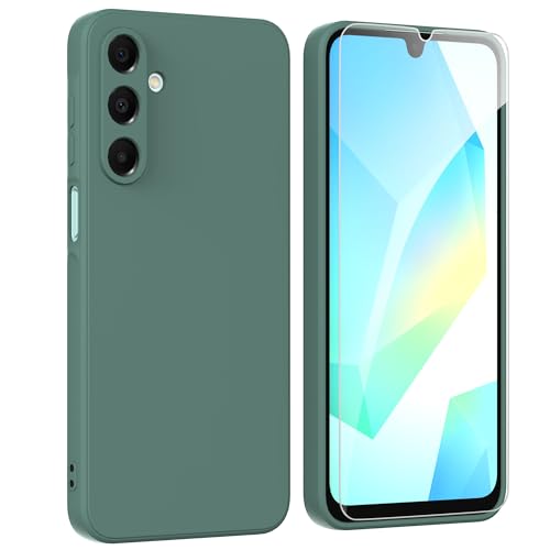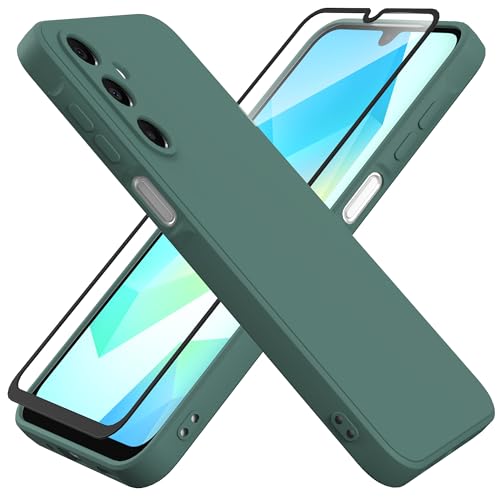 ARRYNN Coque pour Samsung Galaxy A16 4G / 5G (6.7") + Film Protection écran en Verre trempé,Housse Ultra Premium TPU Silicone Liquide Flexible pour Samsung Galaxy A16 4G / 5G - Vert foncé