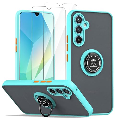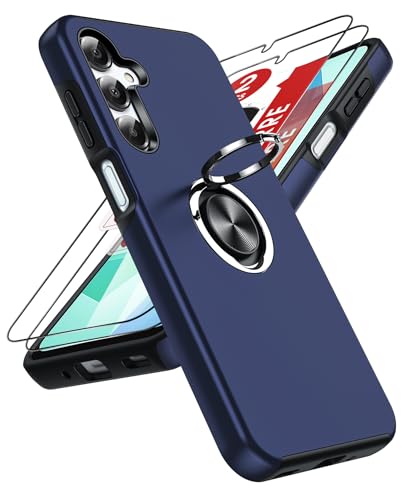 LYZXMY Coque pour Samsung Galaxy A16 5G Bleu avec Anneau Stand Case+2 x Protecteur d'écran en Verre Trempé,PC+ TPU Housse Étuis de Protection Coque Antichoc