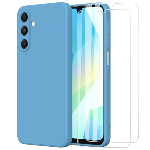 THIYUFUNS Coque pour Samsung Galaxy A16 5G / 4G avec 2 Verre trempé,Silicone Liquide Housse Étui de Protection Galaxy A16 Microfibre Anti-Rayures Coque Galaxy A16 5G / 4G (6.7") - Bleu