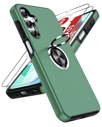 LeYi Coque pour Samsung Galaxy A16 avec 2 Verre Trempé Vitre Protection et Anneau Telephone Invisible, Militaire PC et TPU Etui Antichoc Housse pour Samsung A16 - Vert