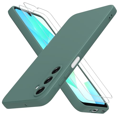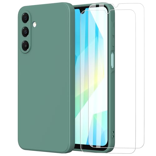THIYUFUNS Coque pour Samsung Galaxy A16 5G / 4G avec 2 Verre trempé,Silicone Liquide Housse Étui de Protection Galaxy A16 Microfibre Anti-Rayures Coque Galaxy A16 5G / 4G (6.7") - Vert foncé