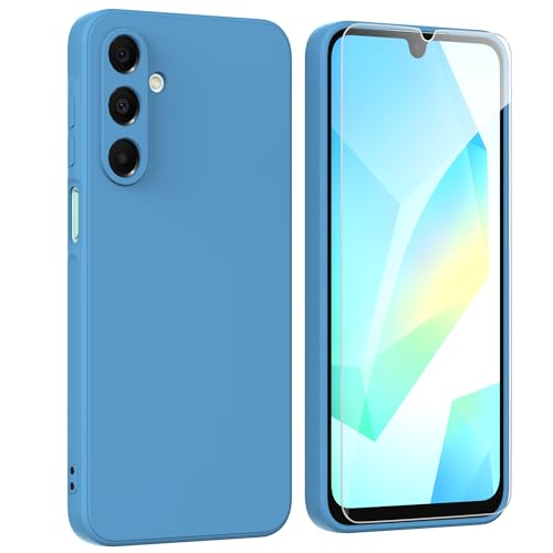 ARRYNN Coque pour Samsung Galaxy A16 4G / 5G (6.7")+ Film Protection écran en Verre trempé,Housse Ultra Premium TPU Silicone Liquide Flexible pour Samsung Galaxy A16 4G / 5G - Bleu