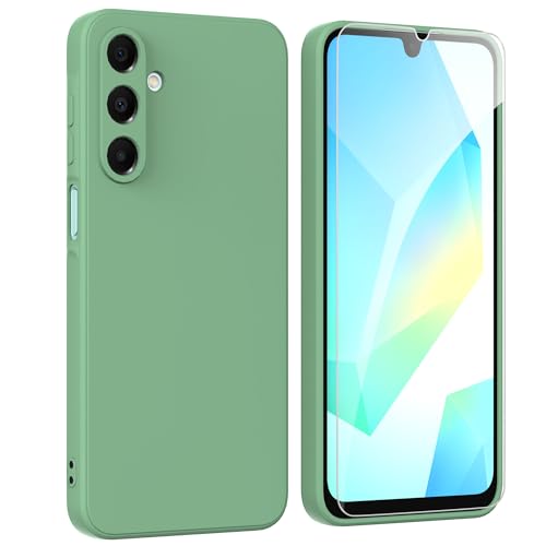HHUIWIND Coque pour Samsung Galaxy A16 5G / 4G (6.7") avec Verre Trempé écran Protecteur,Housse de Protection Silicone TPU Anti-Scratch Antichoc Bumper Étui Case Cover - Vert