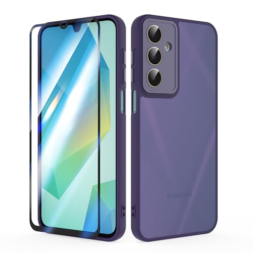 HHUIWIND Coque pour Samsung Galaxy A16 5G / 4G (6.7") avec Verre Trempé écran Protecteur,Housse de Protection Silicone TPU Anti-Scratch Antichoc Bumper Étui Case Cover - Violet