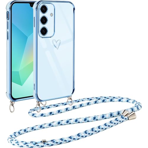 Vauki Coque pour Samsung Galaxy A16 5G avec Cordon de Collier, Galvanisé Etui Housse avec Motif Coeur d'amour, Antichoc Anti-Rayures Case avec Bandoulière pour Samsung A16 5G 6.7", Bleu