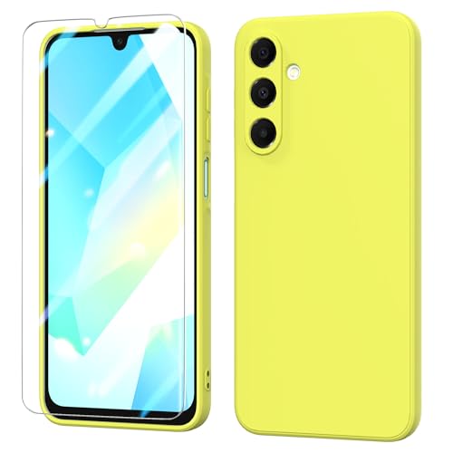 BUTISHIYU Coque pour Samsung Galaxy A16 4G / 5G Case avec Protecteur D'écran en Verre Trempé,Housse Doublure Douce en Tissu Microfibre Anti-Chocs Coque Compatible avec Samsung Galaxy A16 - Jaune