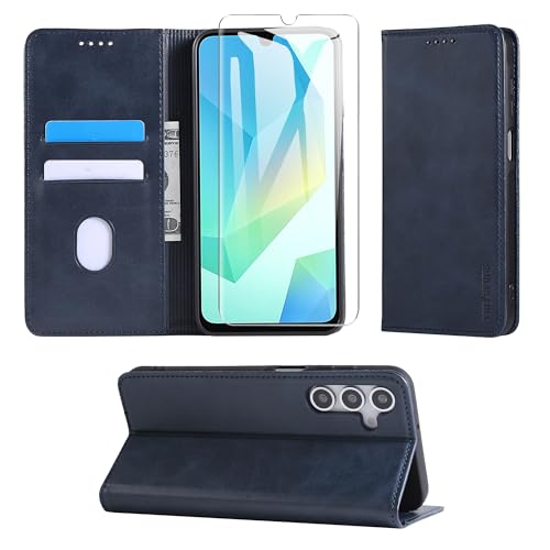 THIYUFUNS Coque pour Samsung Galaxy A16 5G / 4G avec 1 Verre trempé, Etui Premium Housse en Cuir Pochette Protection Portefeuille Case Magnétique Étui pour Samsung Galaxy A16 5G / 4G - Bleu