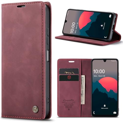 Samokor Coque pour Samsung Galaxy A16 5G/4G Housse Cuir Premium Etui Rabat Pochette Portefeuille Fentes Cartes Magnétique,Étui Protection pour Samsung Galaxy A16 5G,Vin Rouge