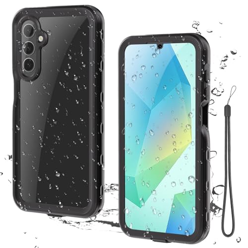 Miimall Coque pour Samsung Galaxy A16,IP68 Étanche Coque Verre Trempé Samsung A16,Militaire Robuste Intégrale Coque Samsung A16 avec Cordon,Antichoc Transparente Étui Samsung A16 Antidérapante,Noir