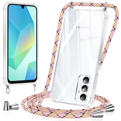 Vauki Coque pour Samsung Galaxy A16 5G avec Cordon de Collier,Silicone Transparent TPU+PC Bumper Protection Étui Lanyard avec Sangle Réglable Chaîne Case pour Samsung A16, Rose 01