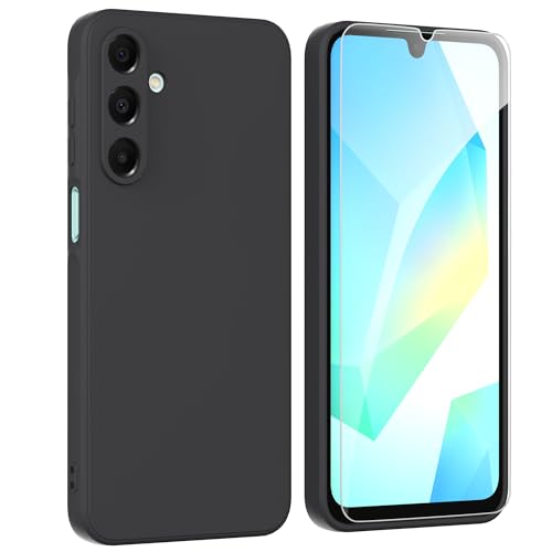 ARRYNN Coque pour Samsung Galaxy A16 4G / 5G (6.7") + Film Protection écran en Verre trempé,Housse Ultra Premium TPU Silicone Liquide Flexible pour Samsung Galaxy A16 4G / 5G - Noir