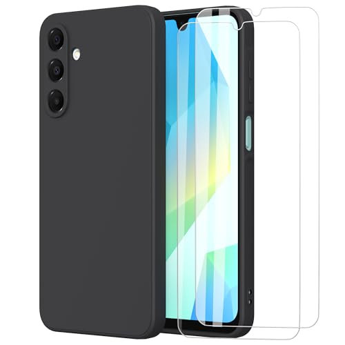 THIYUFUNS Coque pour Samsung Galaxy A16 5G / 4G avec 2 Verre trempé,Silicone Liquide Housse Étui de Protection Galaxy A16 Microfibre Anti-Rayures Coque Galaxy A16 5G / 4G (6.7") - Noir