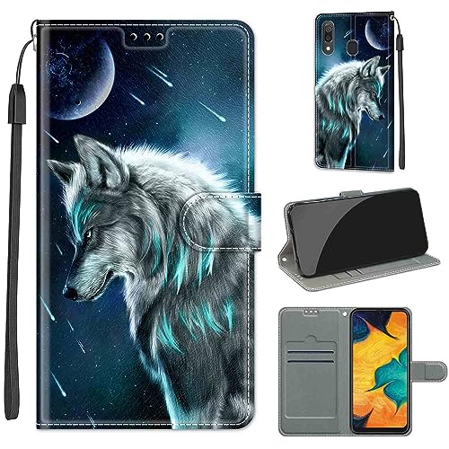 TOUCASA Coque pour Samsung Galaxy A20 / A30, Coque Cuir PU Luxe Portefeuille à Aimant [3D Bling Surface] Coque Rabat Portefeuille [Life Time Warranty] Housse Étui de Protection (Loup)