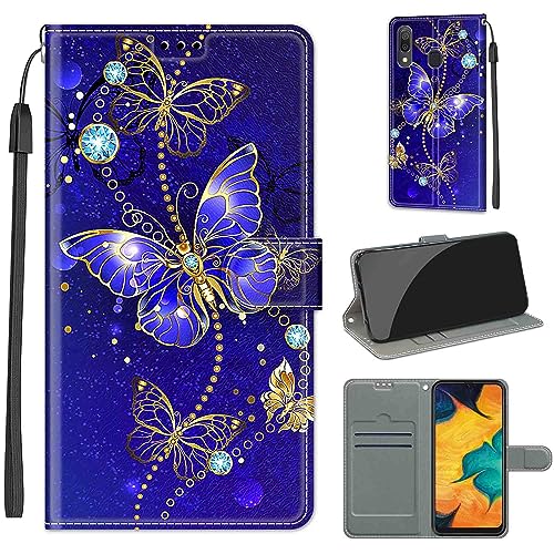 YIRRANZD Coque pour Samsung Galaxy A20 / A30, Protection Housse en Cuir PU Portefeuille à Rabat Motif [Wrist Strap], Flip Antichoc Etui à pour Samsung A20 / A30 (Papillon B)