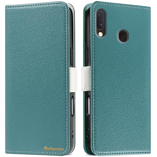 Butnyeoe Coque pour Samsung Galaxy A20e Rabat,Housse Samsung A20e Clapet,Portefeuille Etui avec Fonction Support et Porte-Carte,Litchi Texturé Cuir/Antichoc Flip Cover Case.Bleu Vert