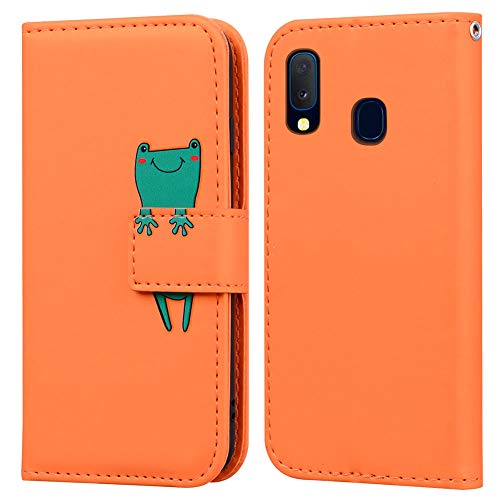 Ailisi Coque pour Samsung Galaxy A20E, Mignon Cartoon Animal Grenouille Etui Portefeuille en Cuir PU Housse avec Fonction Stand, Fermeture Magnétique, Emplacements de Cartes -Orange