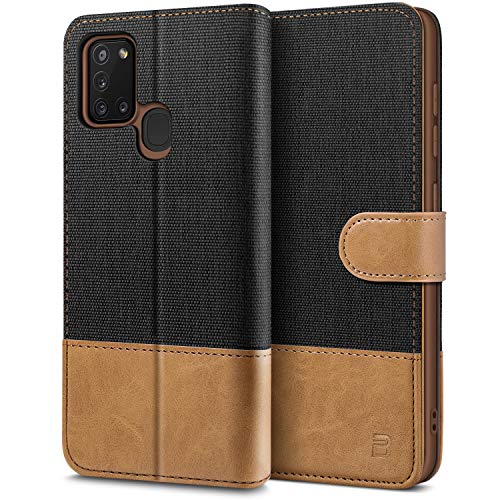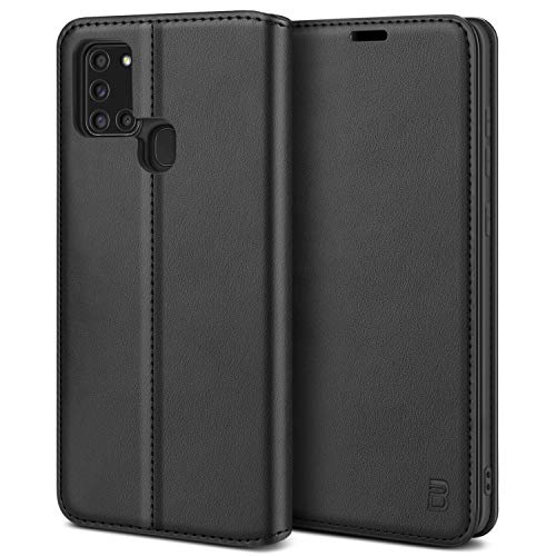 BEZ Coque pour Samsung A21s, Etui Housse pour Samsung Galaxy A21s en Cuir Premium Flip Case Portefeuille, à Rabat avec Porte-Cartes de Crédit, Fermeture Magnétique, Noir